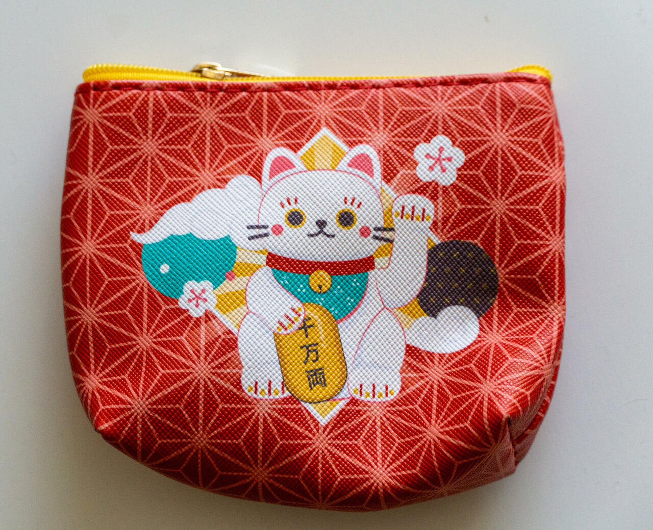 Valge Õnnekassiga punane rahakott, lukuga