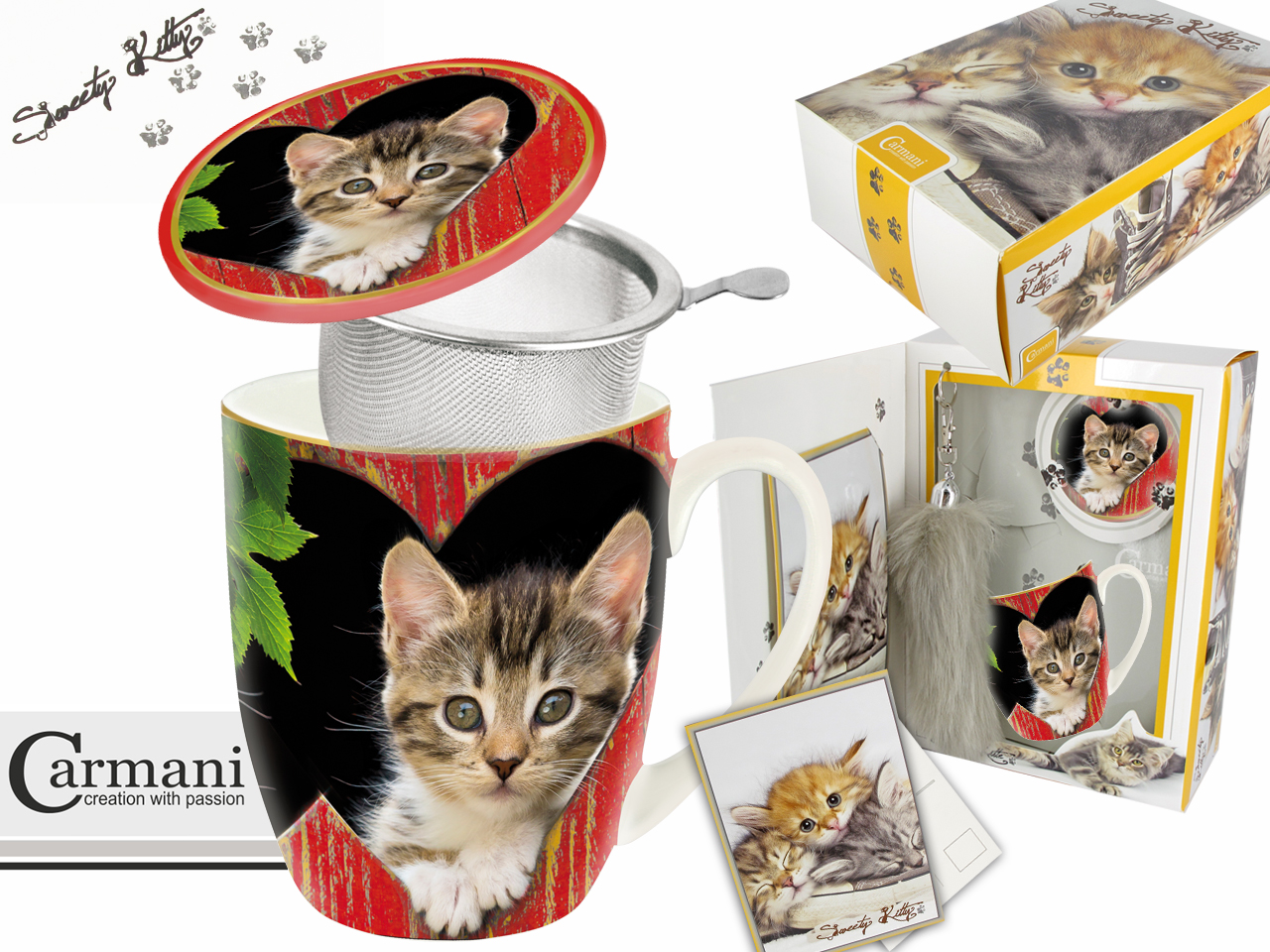 Sweety Kitty Kassipojaga Teekomplekt: Tass, Kaas, Sõel, Kaart