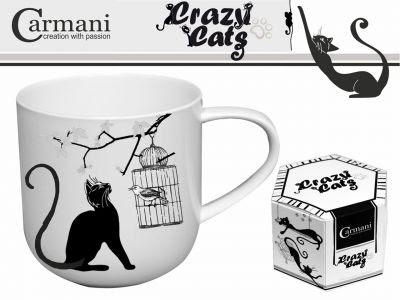 Crazy Cats Mustad Kassid, Valge Tass, Kinkekarbis "Kass&Linnuke"