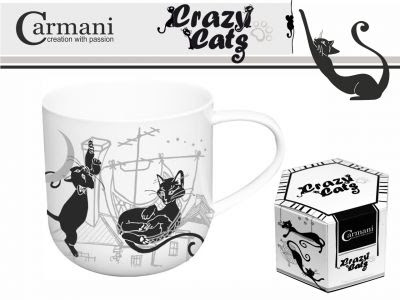 Crazy Cats Mustad Kassid, Valge Tass, Kinkekarbis "Kassid Katusel"